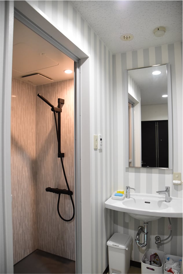 シャワー室、休憩室、マッサージチェア、自動販売機など社内の設備が利用できます。