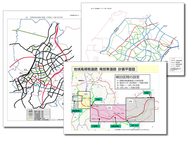 自動車、バス、モノレール、自転車、徒歩など、様々な交通手段を最適に組み合わせ、街全体の交通をデザインします。都市の将来像や人々のライフスタイルを予測し、誰もが快適に移動できる交通ネットワークの将来計画を策定します。過度な車依存から脱却し、持続可能な交通社会の実現に繋げます。