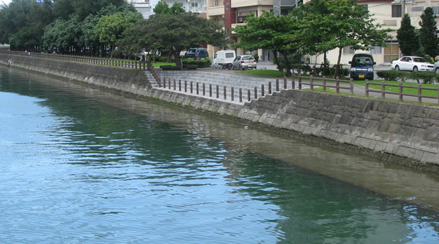 台風や豪雨による洪水から人々の暮らしを守り、豊かな自然と共生する、安らぎのある水辺空間を創造します。沖縄の河川は、流域面積が小さく、勾配が急なため、大雨が降ると急激に水位が上昇しやすい特性があります。私たちは、設計業務を通して地域の安全・安心を確保するための護岸設計や河川改修に取り組むと同時に、人々が自然と触れ合える親水公園の整備など、潤いのある地域づくりにも貢献しています。
